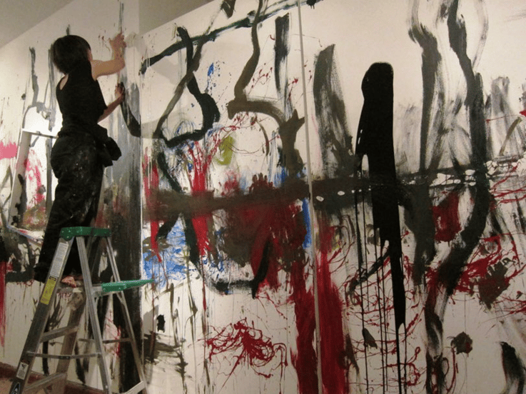 制作は絵画、写真、映像を通じた「直感的抽象」に基づいて展開しており、油彩、墨、金箔、岩絵具などの素材を、作品ごとに直感的に選んで用いている。視覚言語は、ニューヨーク・スクールの抽象表現主義と、日本の伝統的な美意識の両方に影響を受けている。