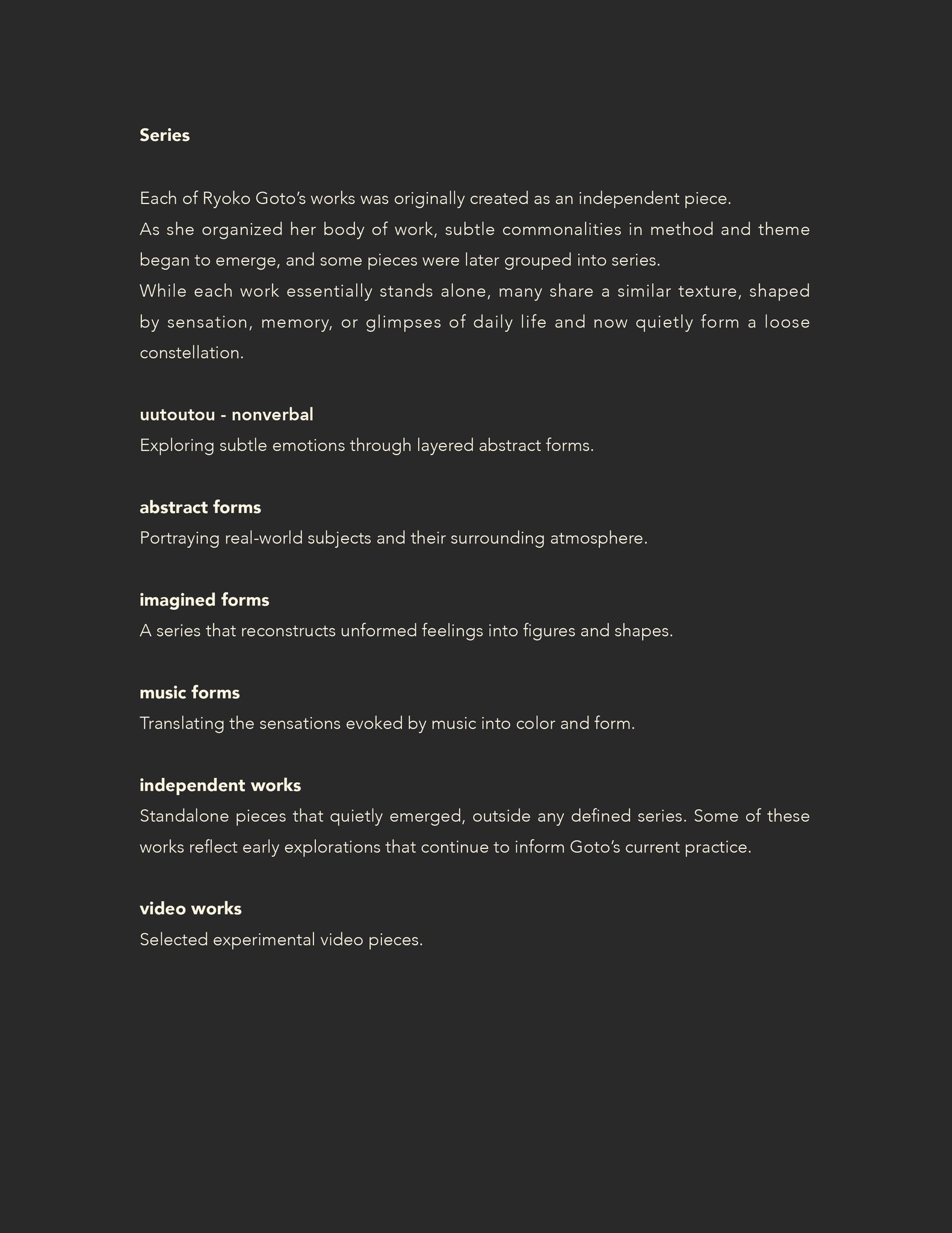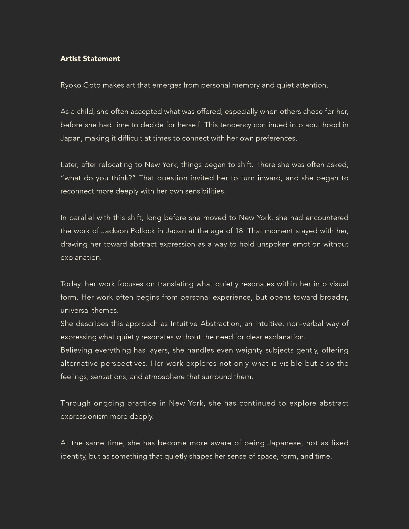 A refined selection of Ryoko Goto’s abstract works, shaped by Japanese spatial sensibility.